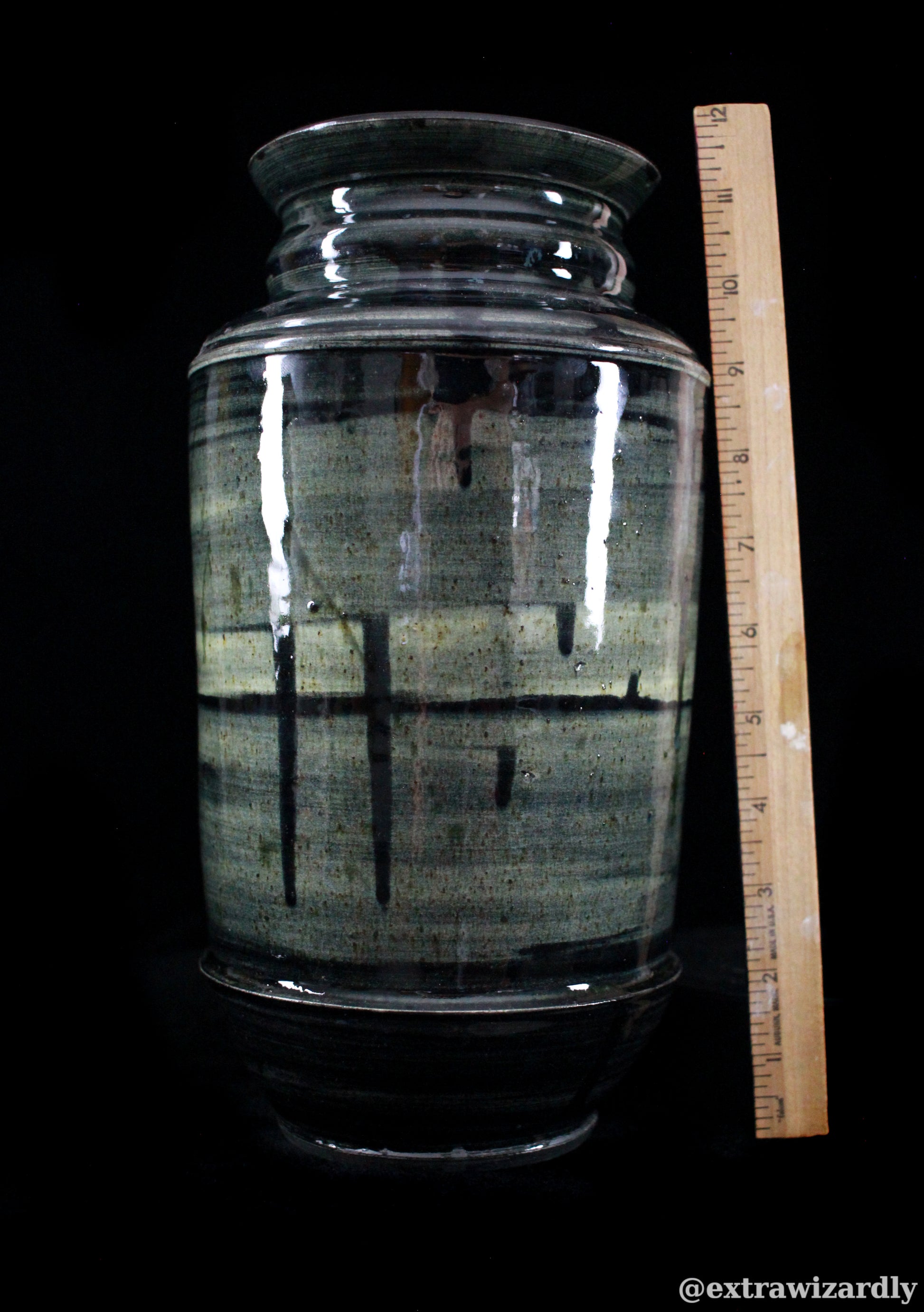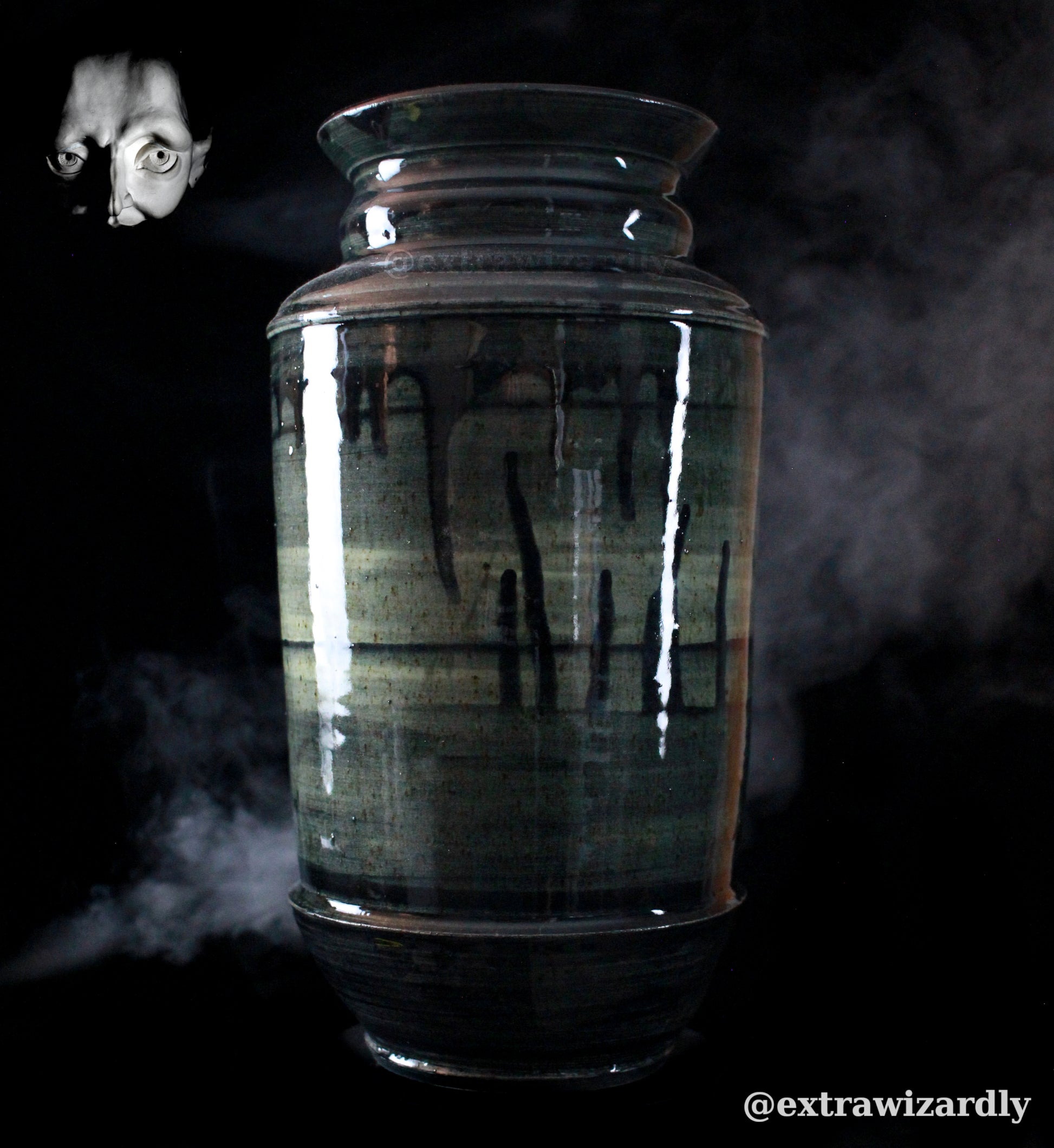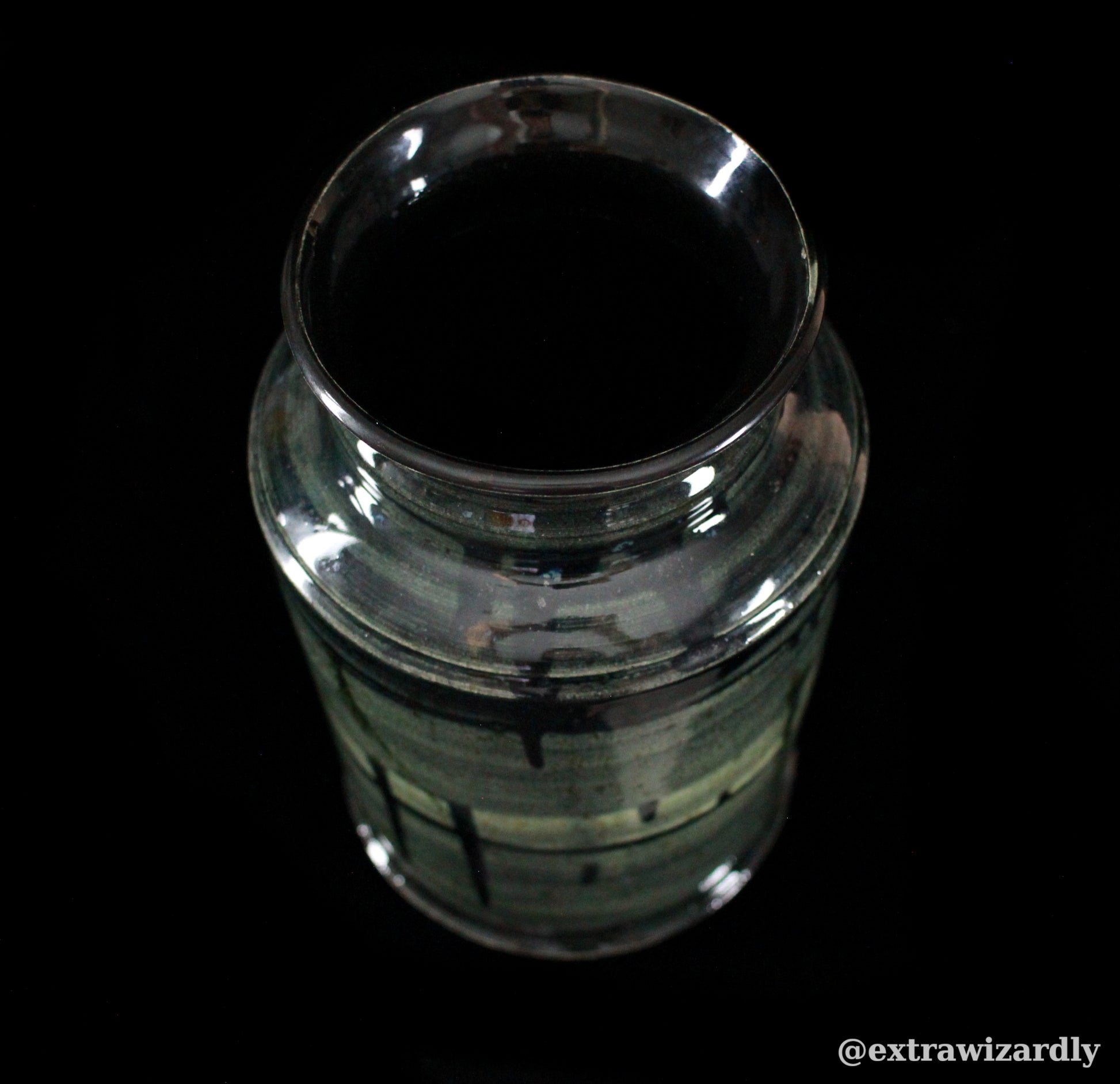 Here stands the aftermath, glazed in god-blood and void. The form—broad, strong, imposing—bears the weight of what it once held. The surface, glossed and inky it languishes in the light. As if the very air recoiled from its making. No cracks. No weakness. Only the perfect, terrible smoothness of a deed done without remorse.
