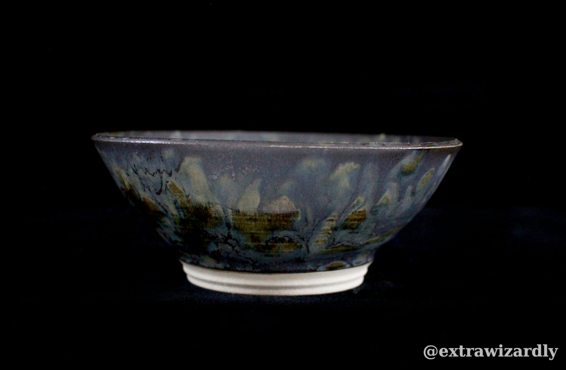 Ash remembers water. These bowls—charblack, as if shaped from the very debris of a burnt grove—are dappled with translucent glaze like the first rain after a wildfire. They do not ask to be filled. They demand it. (Serve bitter herbs or sweet figs; the bowls will not judge, only reflect.)