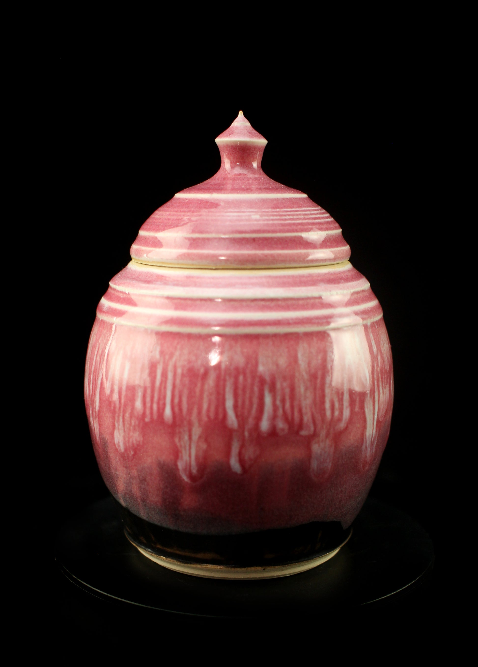 In soft multi-tonal pink floating over a rich glossy black glaze, this dreamy jar evokes Astraea, goddess of balance and stardust. Use it as a display piece or storage jar, and let it radiate a sense of cosmic harmony.